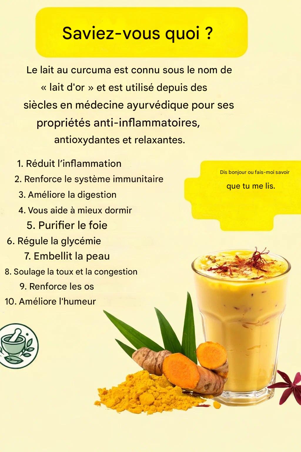 La leche au curcuma peut aider à réduire les gaz, à ralentir et à favoriser une digestion plus légère.