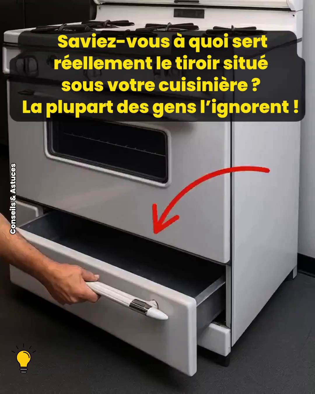 Il est là, discret, souvent négligé… ce fameux tiroir sous la cuisinière. La plupart d’entre nous y rangent des moules à gâteaux, des plaques de cuisson ou des poêles volumineuses. Et pourtant… ce tiroir n’est pas qu’un simple espace de rangement !