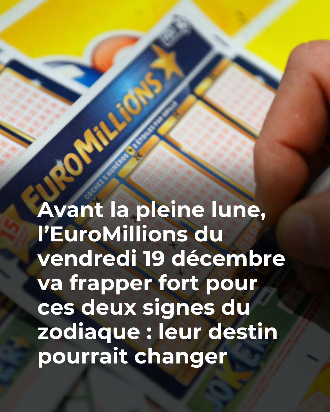 Les planètes du firmament suggèrent que la connexion bénéfique entre Jupiter, astre de l’expansion et de la bonne fortune, Saturne et Neptune pourrait apporter une vague de bonheur en cette fin de semaine… juste avant l’arrivée de Noël. Ainsi, si vous décidez de jouer à l’EuroMillions pour ne pas passer à côté de cette opportunité unique de gagner 29 millions, votre shopping de fêtes pourrait être bien différent… et bien meilleur, bien sûr !