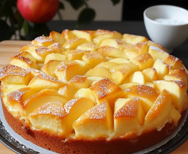 Un gâteau aux pommes et crème et facile à préparer, idéal pour un petit déjeuner nutritif, un déjeuner ou un dîner.