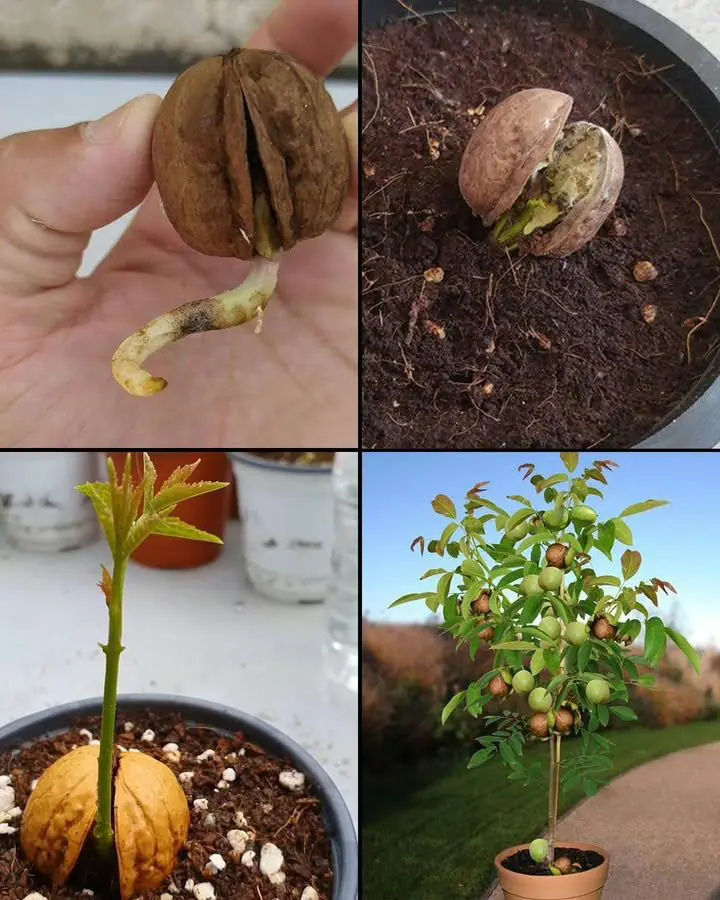 - Après trempage, plantez les noix dans un pot profond.