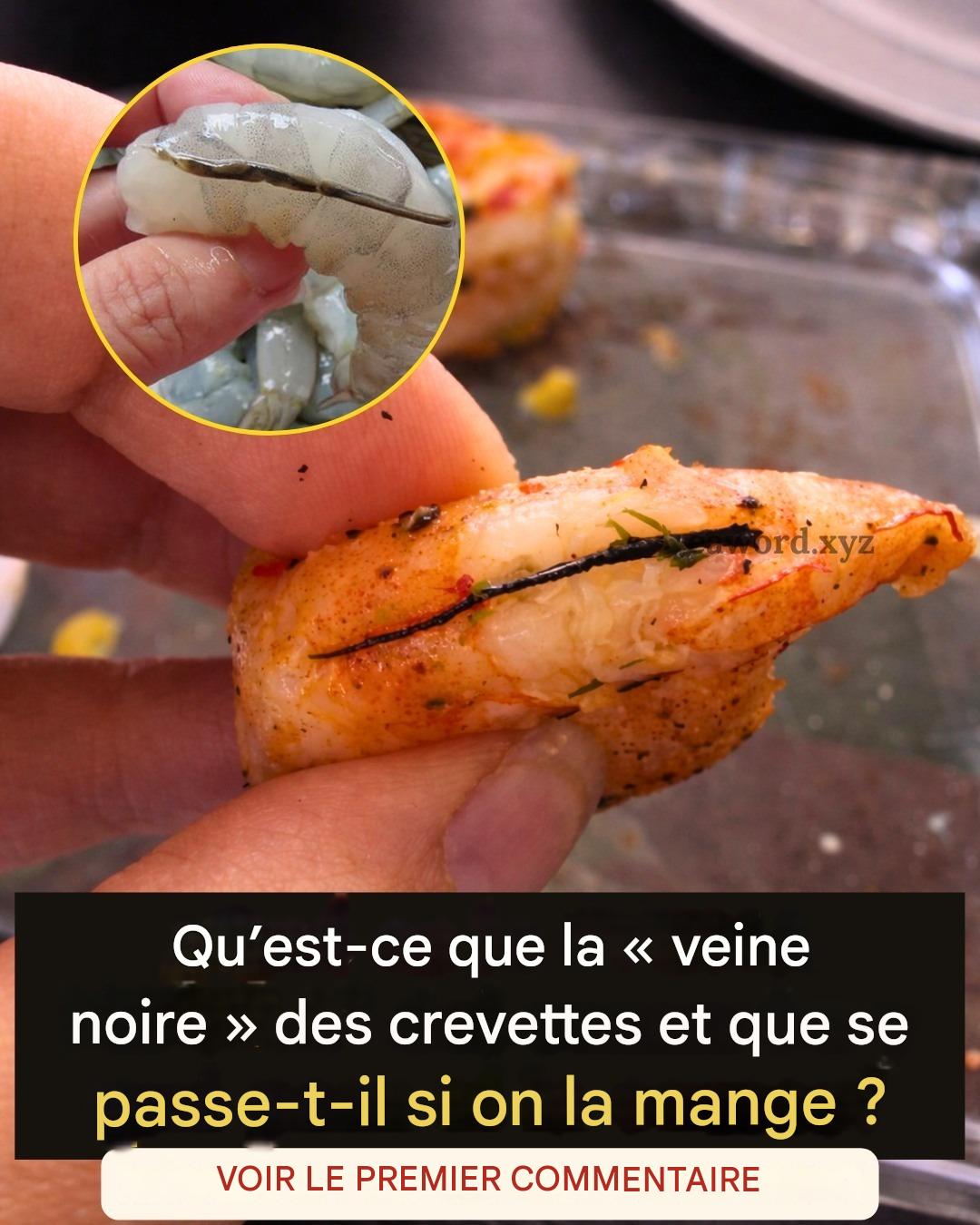 Il s’agit en réalité du tube digestif, ou intestin, de la crevette. Il peut contenir des restes de nourriture ingérée avant sa capture. Sa couleur varie du brun au noir, selon l’alimentation de la crevette et son milieu de vie.