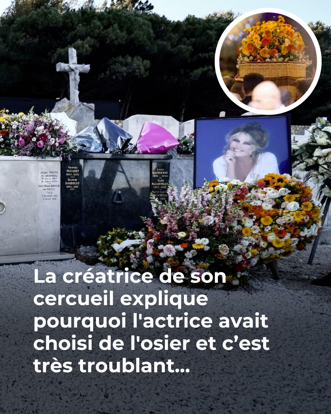 Ce mercredi 7 janvier 2026, Brigitte Bardot a été enterrée au cimetière marin de Saint-Tropez. La star de cinéma repose ainsi dans un cercueil en osier très spécial, comme l’a révélé sa créatrice sur les réseaux sociaux.