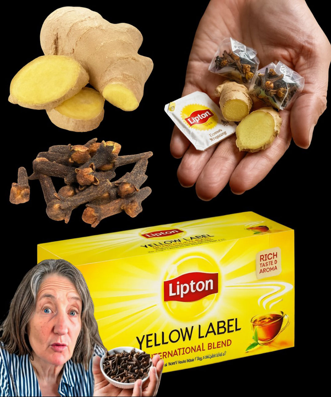 À première vue, cela peut sembler un mélange original… et pourtant, cette combinaison offre une synergie incroyable. Le thé Lipton, qu’il soit vert ou noir, apporte une caféine douce et des antioxydants précieux. Les clous de girofle, ces petits boutons floraux très parfumés, soutiennent la digestion et renforcent les défenses naturelles. Quant au gingembre, star des cuisines et remède de grand-mère, il stimule l’énergie et apaise les tensions. Ensemble, ils forment une équipe de choc pour retrouver tonus, confort digestif et éclat naturel.