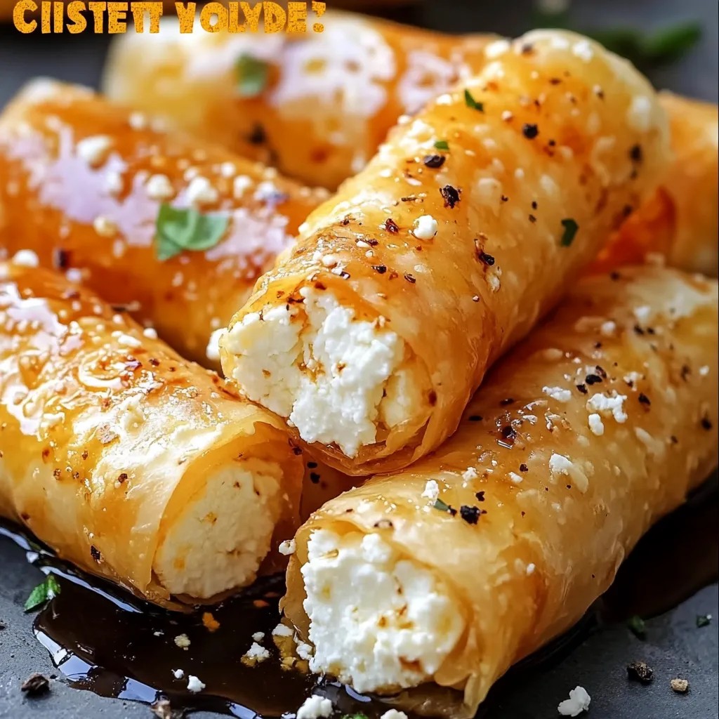 Roulés croustillants de feta au miel épicé, Ces roulés de feta croustillants au miel épicé sont une véritable explosion de saveurs en bouche ! Faciles à préparer et incroyablement gourmands, ils sauront séduire aussi bien vos invités lors d’un apéritif que vos proches pour une entrée originale.
